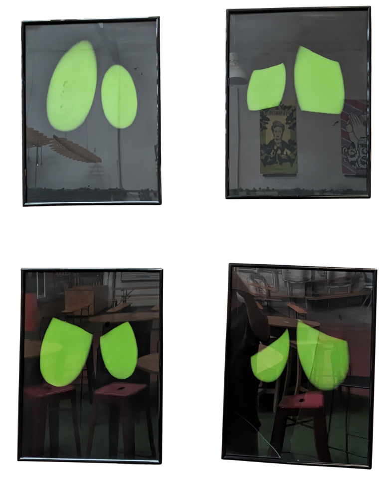 La obra incluye 4 piezas realizadas con spray sobre madera.